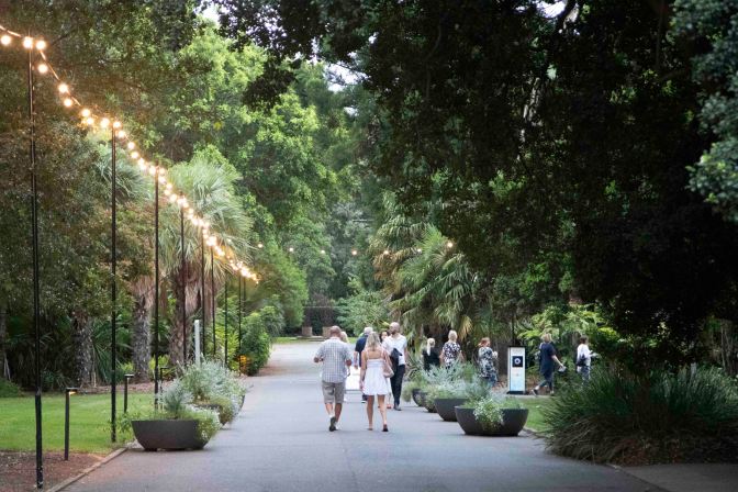 However before I made my way into the exhibition I took this photo below just at the entrance to the gardens. The lights running down the left hand side caught my attention. It looked interesting. I liked how the lights led down the path and around into the gardens. These lights ended up being our guide around the gardens. So like a lot of photos I like, I converted it to Black and White.